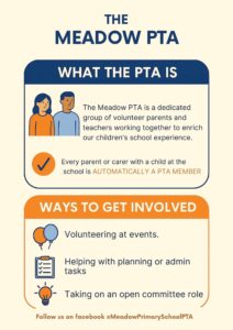 The Meadow PTA is a dedicated group of volunteer parents and teachers working together to enrich and enhance our children’s school experience. Through a variety of fun and creative initiatives, including school discos, summer fetes, and community events, we raise vital funds that directly benefit our children.